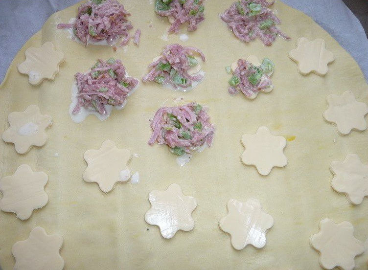 - Avec les emporte-pièces faire les formes, avec une fourchette sceller les feuilletés.