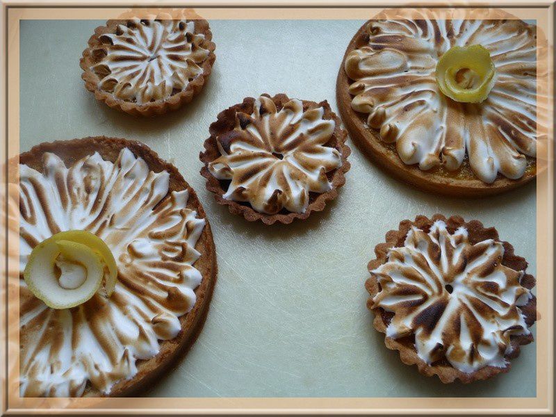 - Mettre la meringue dans une poche à douille, et abaisser sur vos tartes, puis passer le chalumeau pour dorer la meringue.
