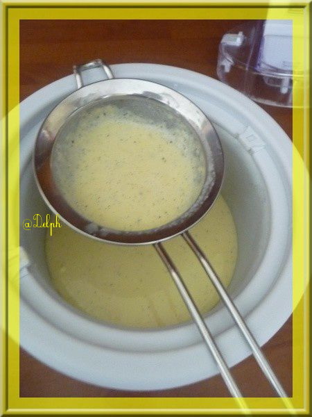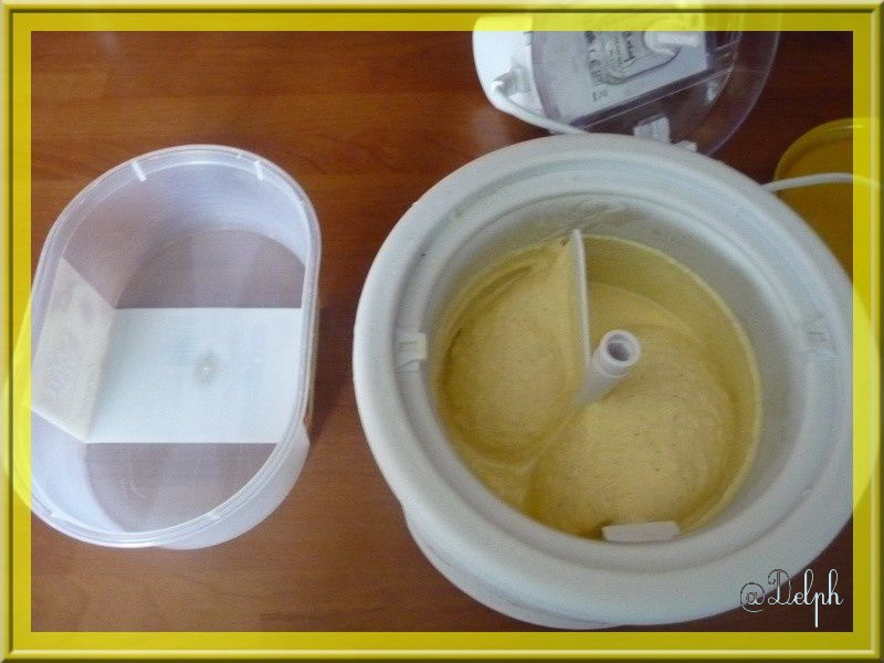 - Passer la crème au chinois, la verser dans le bol de la sorbetière gelé;
