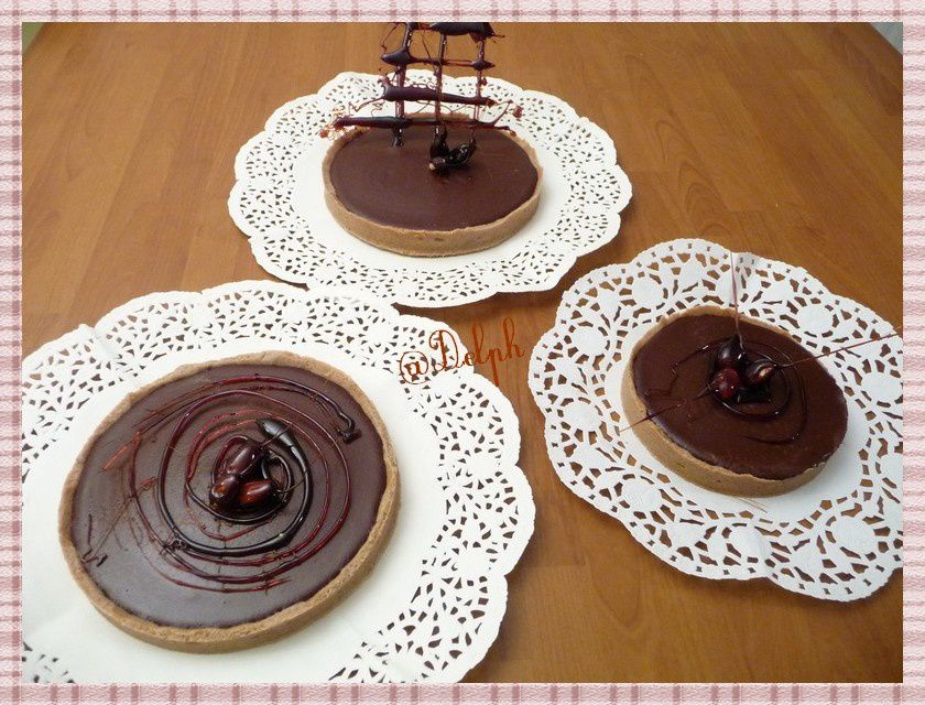Vous savez que je suis addict au chocolat, alors il a fallu absolument que je teste cette tarte, elle est absolument divine. J’ai choisi de les faire dans des cercles, de différentes tailles pour m’amuser et surtout m’entraîner à foncer la pâte, mais vous pourrez utiliser un moule traditionnel.