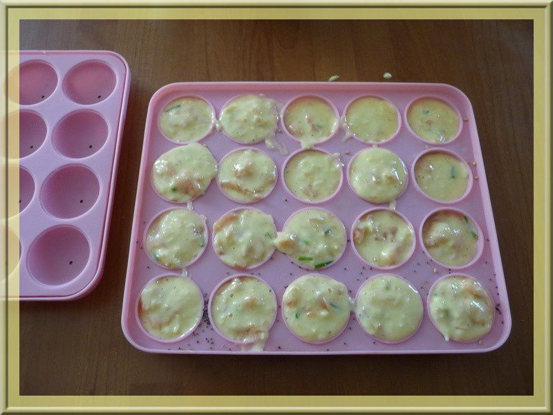 - Mettre quelques graines au fond des alvéoles des moules à pop cakes puis verser la préparation dans le moule, puis faire chauffer environ 25 minutes….