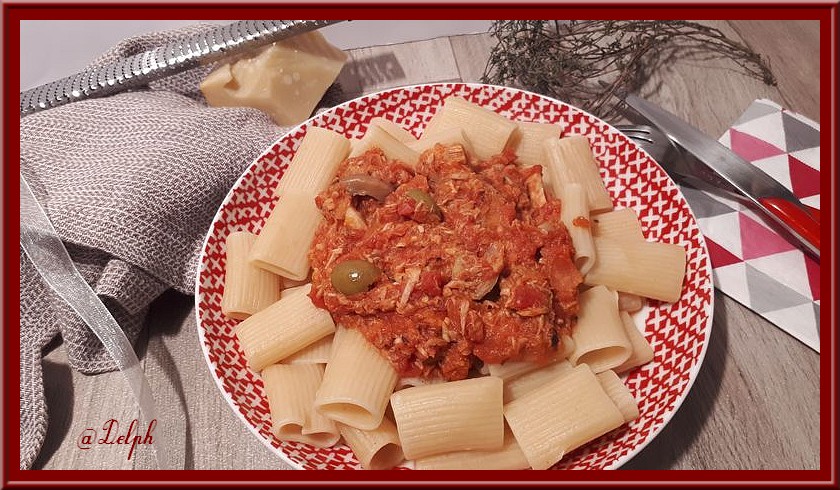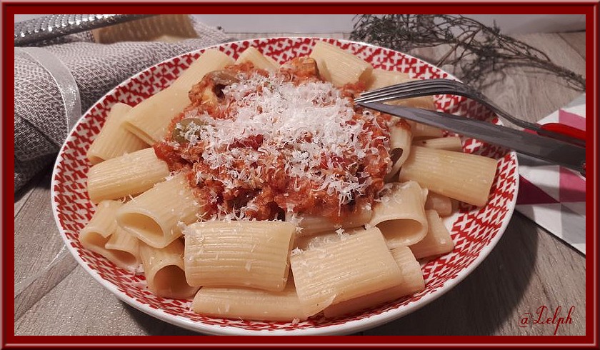 - Verser les pâtes cuites dans un grand plat recouvrir de sauce et parsemer de parmesan