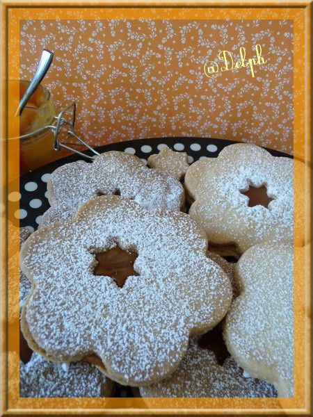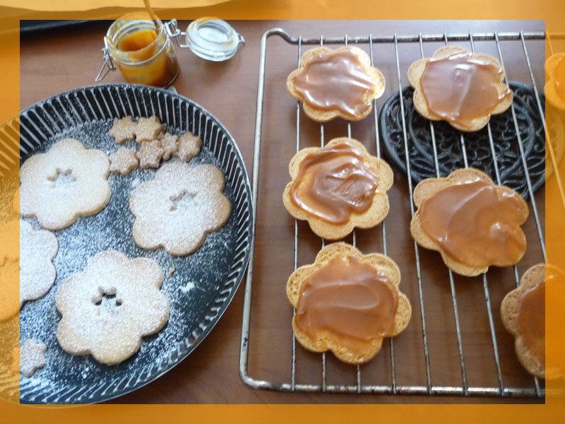 - Faire refroidir sur une grille puis mettre le caramel sur un sablé puis refermer avec un sablé troué.