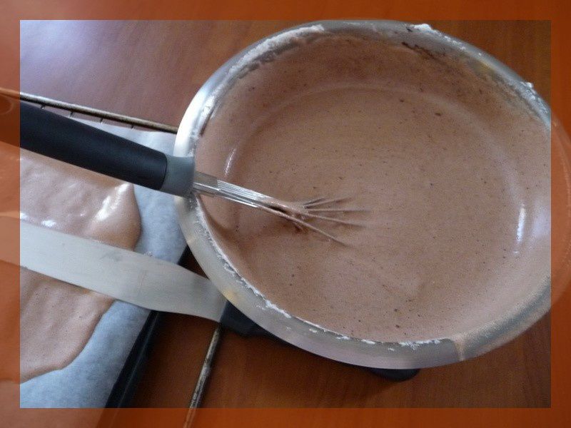 - Mélanger le sucre et les jaunes d’œufs, ajouter la farine,le cacao, mélanger le tout..