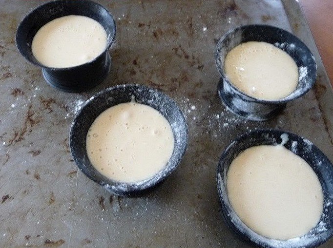 - Verser la préparation dans un moule à soufflé beurré et fariné ou des petits moules individuels et cuire au four 35 minutes à 180°C.