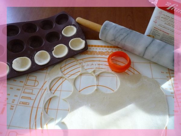 1. Étaler votre pâte et découper à l’aide d’un emporte-pièce des cercles à la grandeur de vos mini moules.