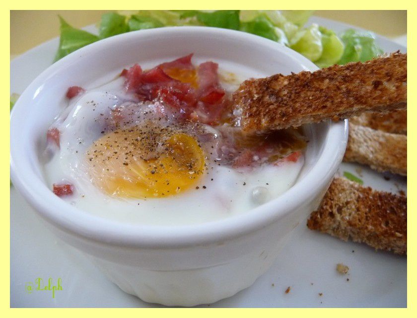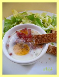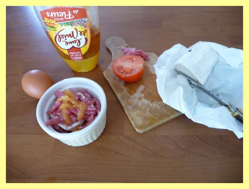 J’adore les œufs cocottes, un de mes repas préféré quand je suis toute seule…Je fouille dans mon réfrigérateur et je teste. Celui-ci est très gourmand avec la petite touche de miel.