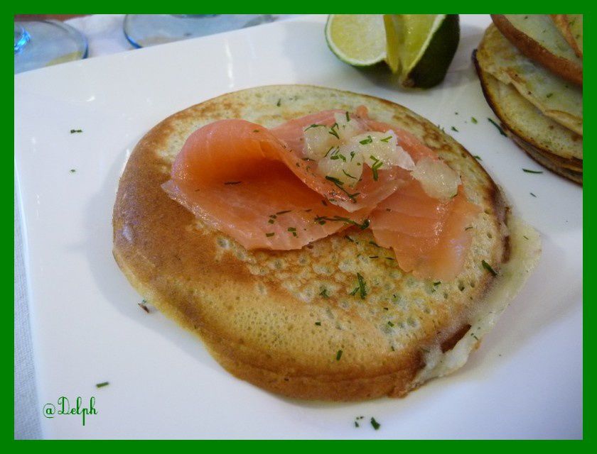 - Servir les blinis tièdes avec le saumon et quelques dés de citron