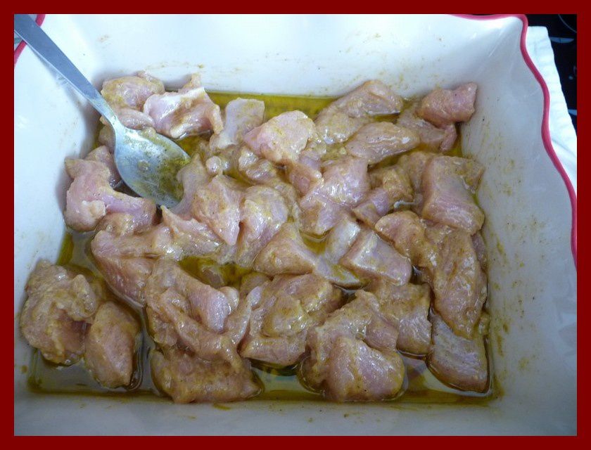 - Mettre les cubes de poulet dans la marinade et laisser mariner quelques heures au frais