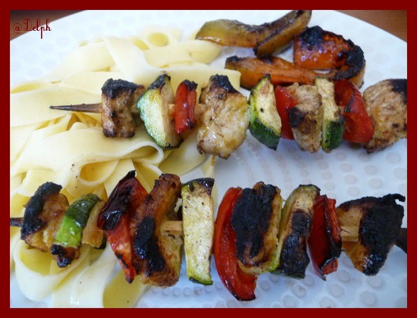 Voici de délicieuses brochettes, dès que les beaux jours arrivent on aime se faire des barbecues et la petite marinade me faisait de l’œil, alors j’ai testé et je ne regrette pas…. Nous nous sommes régalés