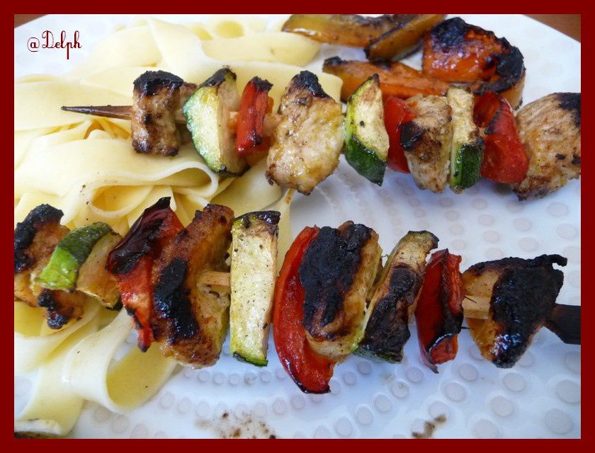 Voici de délicieuses brochettes, dès que les beaux jours arrivent on aime se faire des barbecues et la petite marinade me faisait de l’œil, alors j’ai testé et je ne regrette pas…. Nous nous sommes régalés