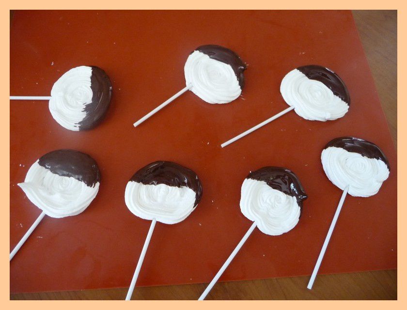 - Pour les choco-addicts, faire fondre le chocolat et tremper le fond des meringues dedans. laissez refroidir.
