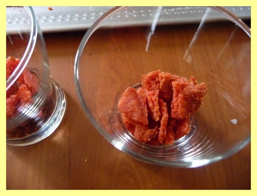 - Laisser refroidir avent d’émietter et de répartir au fond des verrines.