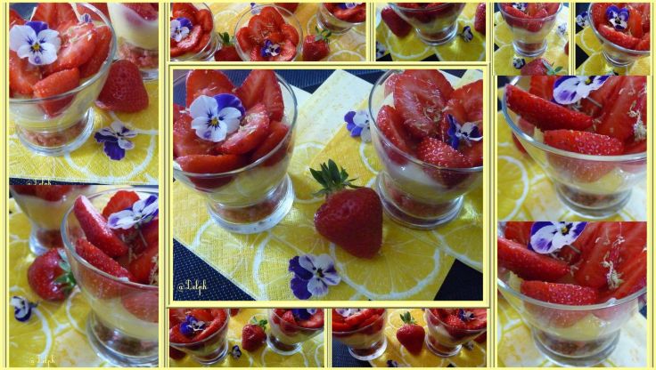 Il me restait un peu de pâte à sablé de pralines roses, des fraises….Il n’y avait plus qu’à faire la crème de citron, alors; Hop en cuisine pour faire un petit dessert bien fruité et plein de pep’s.