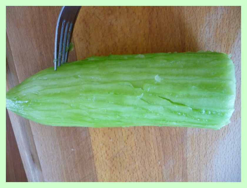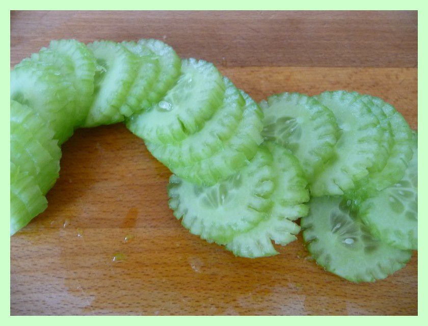 - Peler et couper le concombre en rondelles pas trop épaisses.