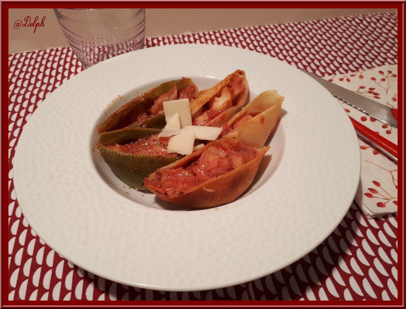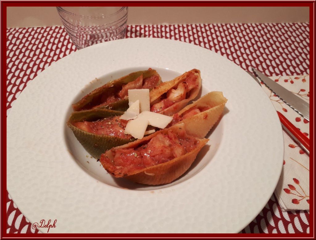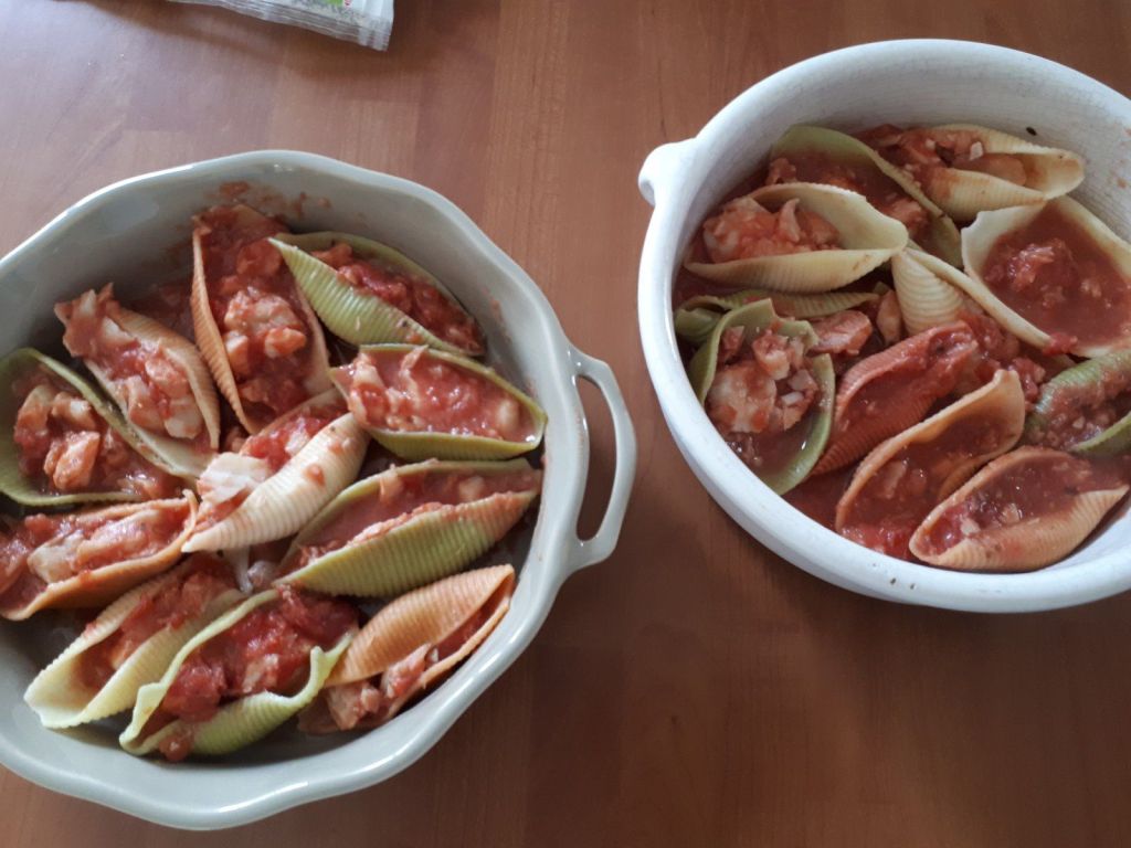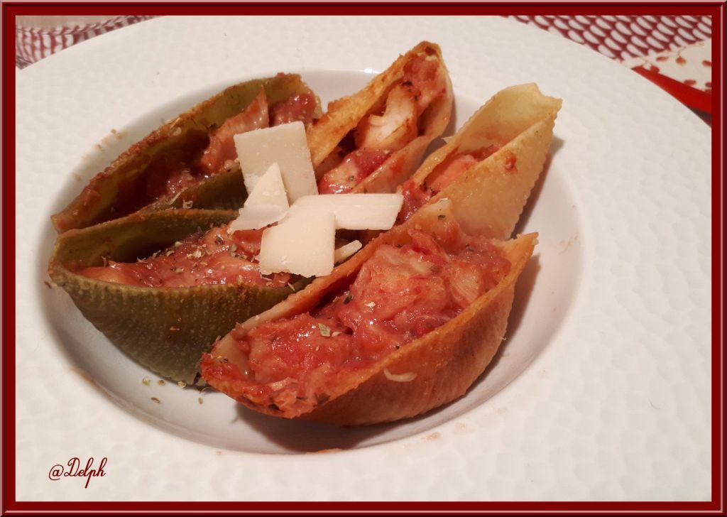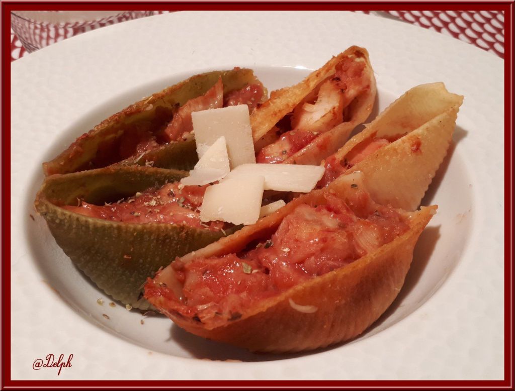 J’aime beaucoup ces grosses pâtes en forme de coquillage, que l’on peut farcir selon nos envies. J’avais déjà fait une recette en faisant une version à la bolognaise, mais aussi au poulet, cette fois-ci j’ai testé avec du poisson..C’est aussi très sympa et très rapide à préparer.