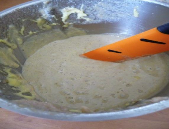 - Mélanger le beurre fondu et le sucre en faisant mousser, incorporer les œufs, puis la farine et la levure.