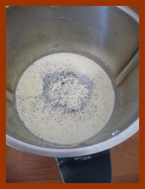 2. Verser la crème, le lait et le sucre vanillé dans le bol et programmer 7min/100°C/vit 2