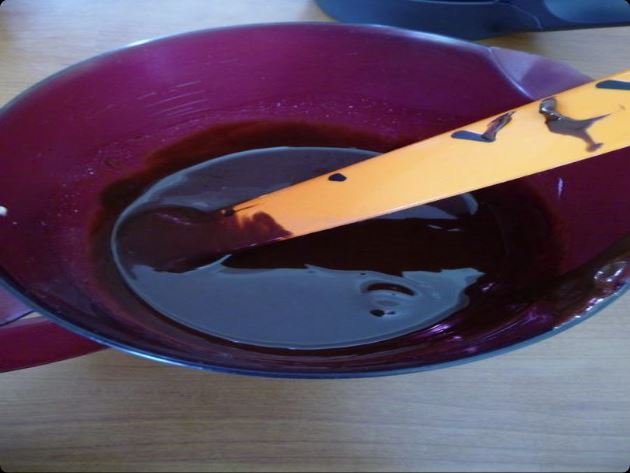 - Faire fondre au micro-ondes 170g de chocolat avec le beurre.
