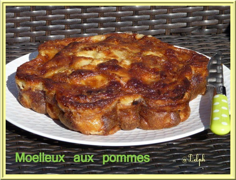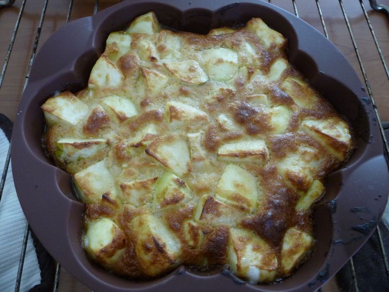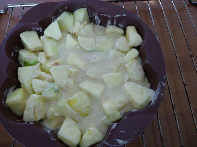 3. Peler les pommes et les couper en morceaux et les ajouter au mélange puis programmer 1min/couteau inversé/vit2, verser dans le moule et enfourner 20 minutes.