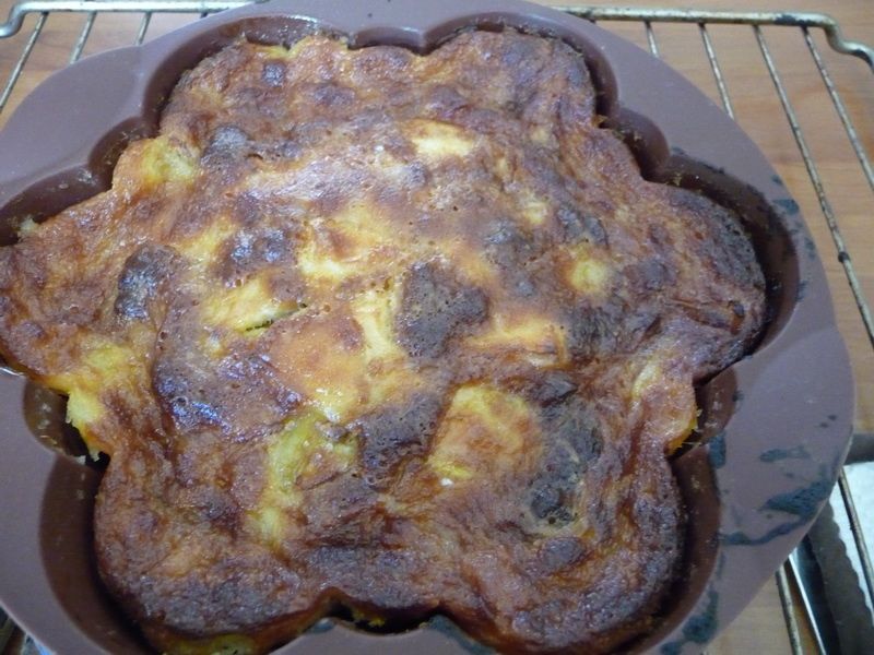 5. Ajouter ensuite l’œuf et mixer 30sec/vit4. Verser la crème sur le gâteau à la fin des 20 premières minutes de cuisson puis ré-enfourner 20 minutes à la même température.