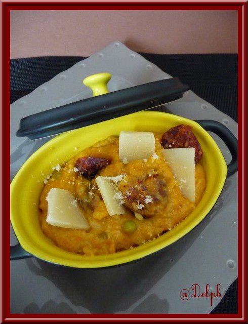 Je me suis inspirée d’une recette trouvée sur l’espace recette et postée par Pinup44. Nous nous sommes régalés avec ce risotto.