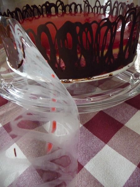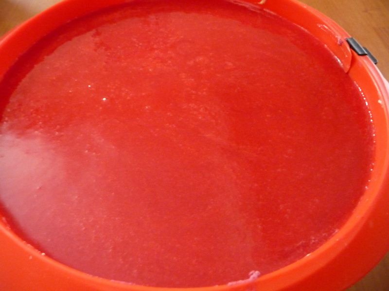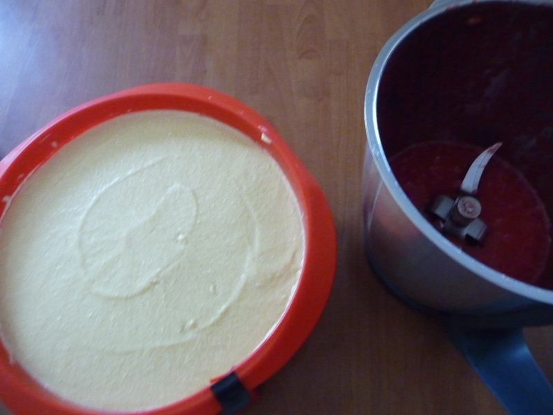 - Verser sur la mousse au fruits rouges et mettre au frais 2 heure avant la préparation du miroir