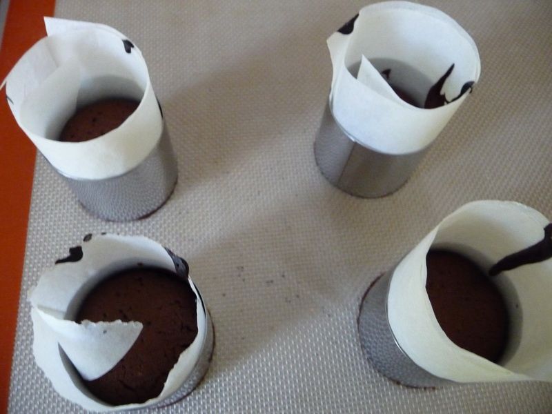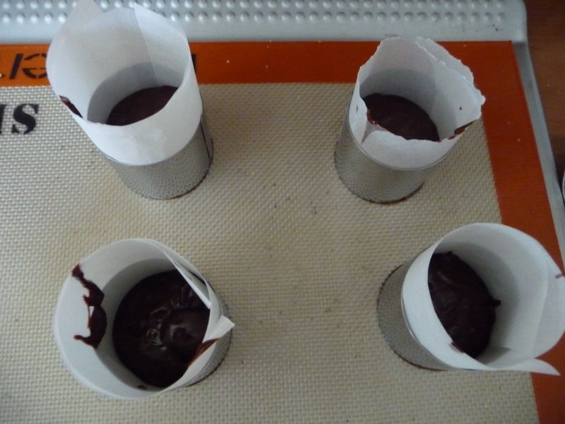 - Remplir les emporte-pièces de pâte au chocolat, enfourner et cuire pendant 7 minutes.