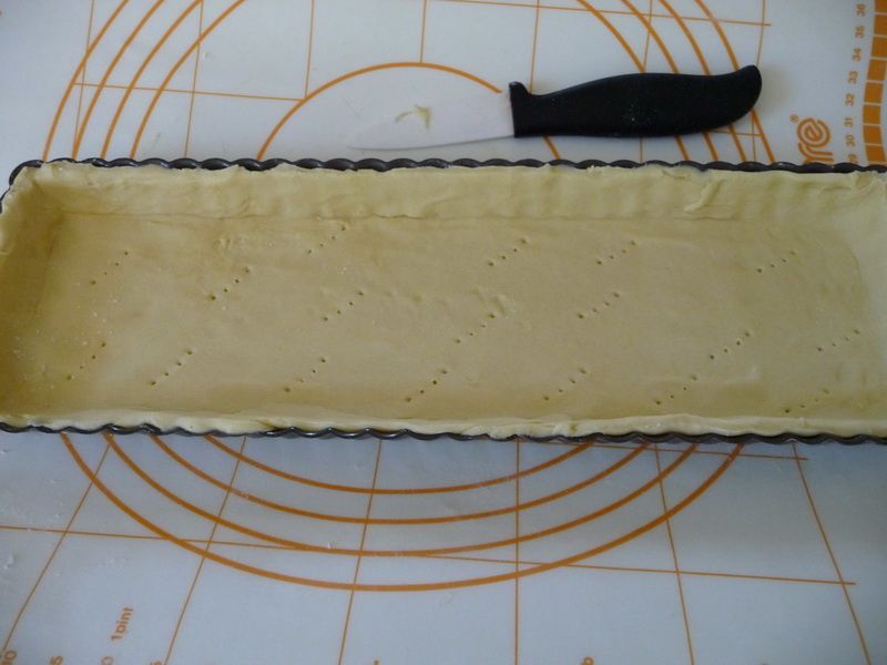 - Tapisser un moule à tarte avec votre pâte. Réserver au frais.