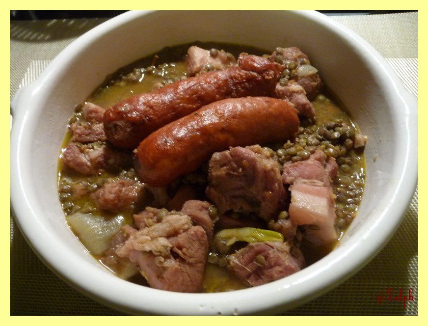 1. Hummm ! voilà une assiette que je ne mange pas assez souvent pourtant dieu sait que l’on aime ça avec mon mari mais les lentilles je les évite car elles sont pleines de fer et il n’en faut pas à mon mari qui ne l’élimine pas. On est obligé de lui retirer du sang régulièrement pour l’éliminer.