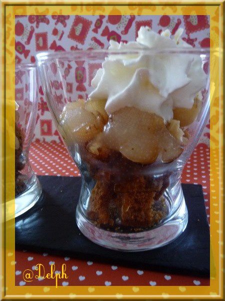 - Couper le pain d’épices en petits carrés, les mettre au fond de la verrine.