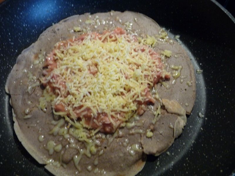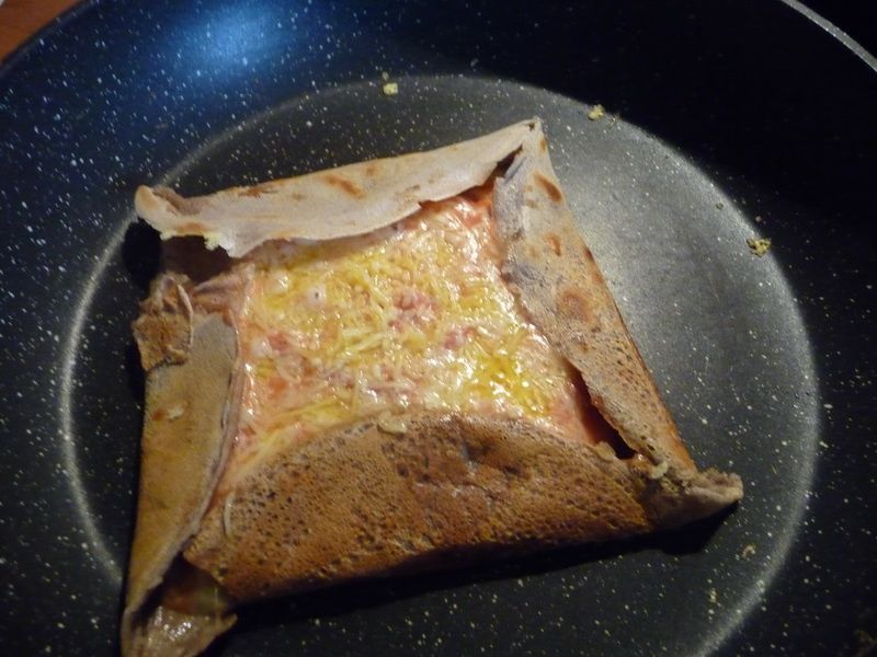 - Vous pouvez fourrer vos crêpes, les mettre sur une grande poêle chaude puis ajouter votre sauce, votre jambon, du comté.