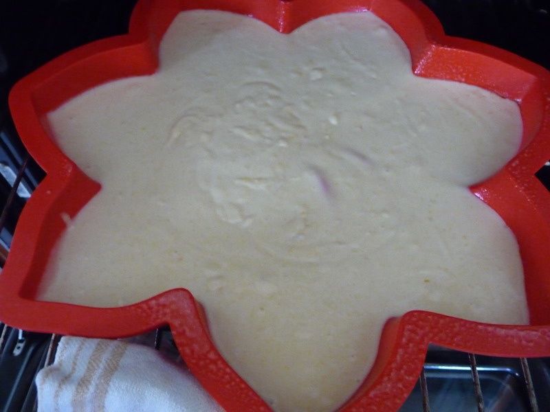 - Verser la préparation dans un moule chemisé de papier sulfurisé et enfourner, si vous utilisez un moule à cake programmer pour 50 minutes, si vous enfourner dans un moule à gâteau 35 minutes suffiront, dans un four préchauffé à 180° (le gâteau est cuit quand la pointe du couteau ressort sèche).