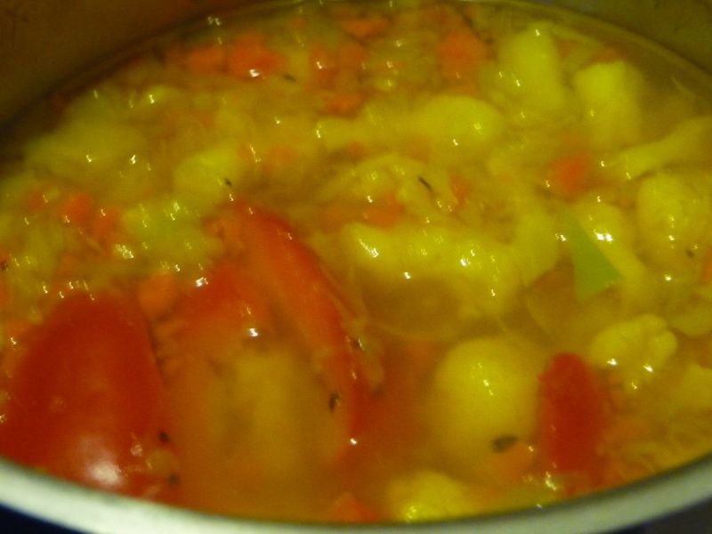 Pour apporter un peu de croquant à ma soupe, j’ai haché un petit bouquet de chou-fleur pour parsemer au-dessus.