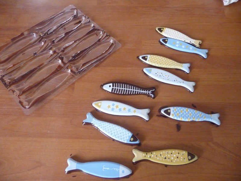 - Mettre le chocolat dans les moules sardine puis placer au réfrigérateur environ 30 minutes, puis vous n’avez plus qu’à démouler les sardines et les dévorer.