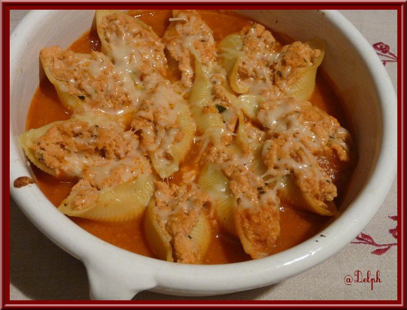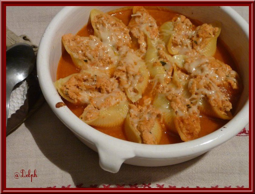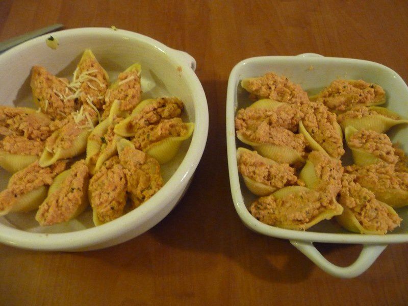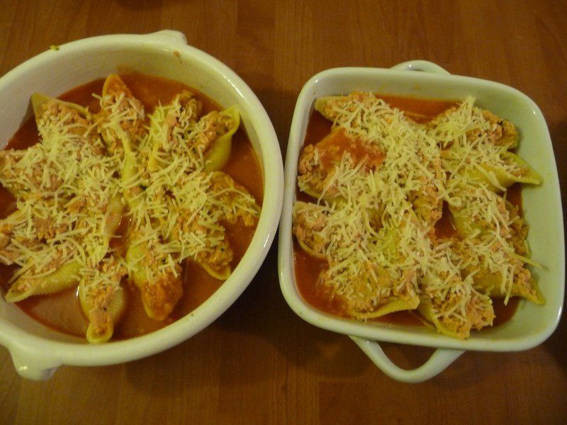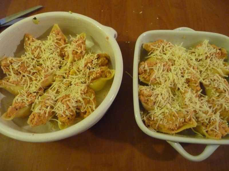 - Remplir les pâtes de cette farce et les ranger dans un plat à gratin. Parsemer de fromage râpé.