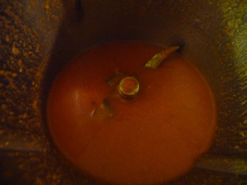 - Ajouter le poulet détailler en gros morceaux puis mixer 10sec/Vit5, ajouter 200 g de sauce tomate, saler, poivrer et faire chauffer 9min/70°/Vit2.