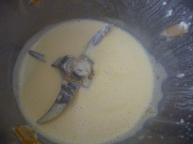 - Inutile de rincer le bol, mette la crème, la fécule puis mélanger 2min/80°C/Vit1, ajouter la moitié du cheddar et l’ail en poudre puis faire chauffer 2min/80°C/Vit2.
