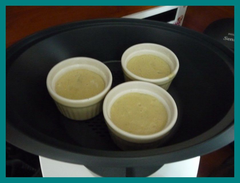 - A l’aide de la spatule, ajouter les blancs directement à la préparation. Mettre la préparation dans des ramequins préalablement beurrés et farinés et les placer dans le Varoma.