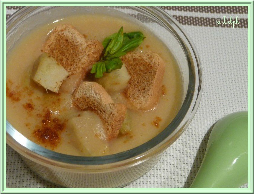 - Verser le velouté dans des verrines, ajouter les morceaux d’artichauts. Parsemer de croûton poudrés de paprika et servir frais.