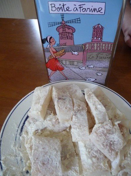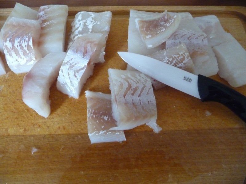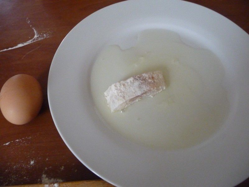 - Découper le cabillaud dans le sens de la longueur en quatre « bâtonnets ».