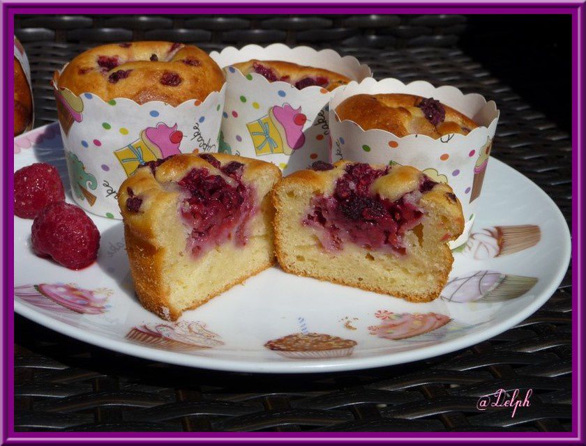 J’ai pris des framboises congelées que j’ai laissé décongeler avant de les introduire dans les muffins.