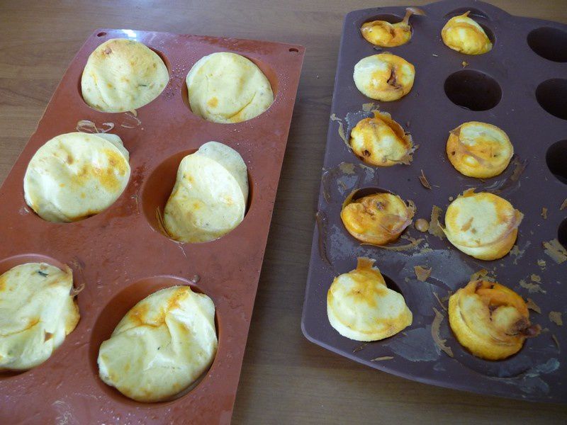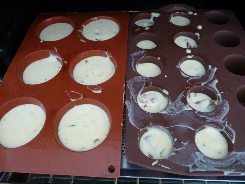 - Les incorporer dans la préparation précédente, saler poivrer, puis répartir le mélange dans des moules à muffins en silicone ou préalablement beurrés.