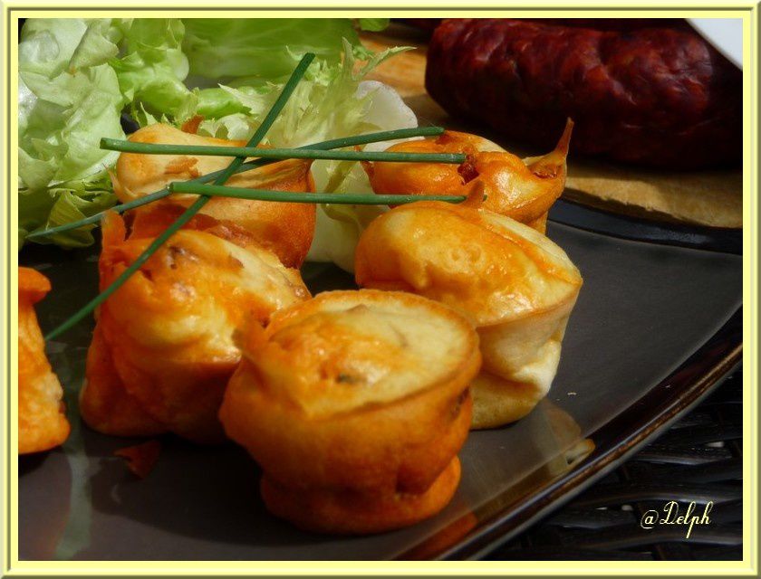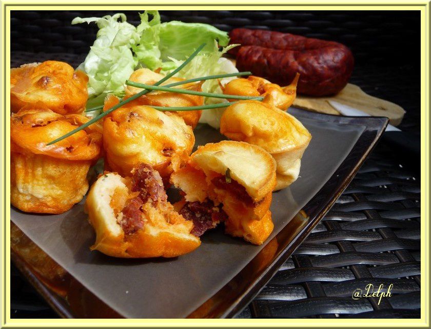 Des petites bouchées pour faire plaisir à mon fiston qui se régale avec le chorizo et le fromage de chèvre.
