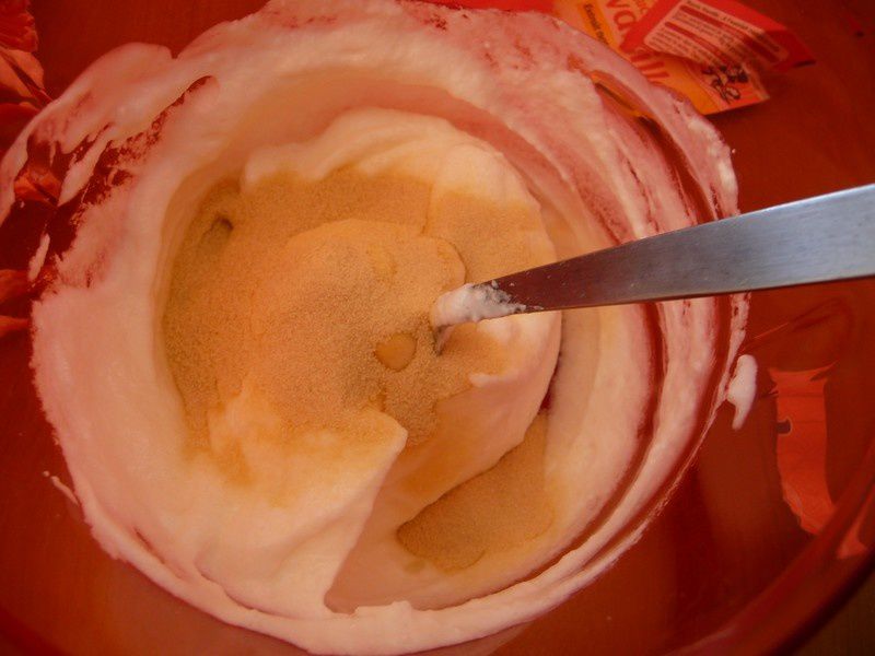 - Battre le fromage blanc et le sucre vanillé