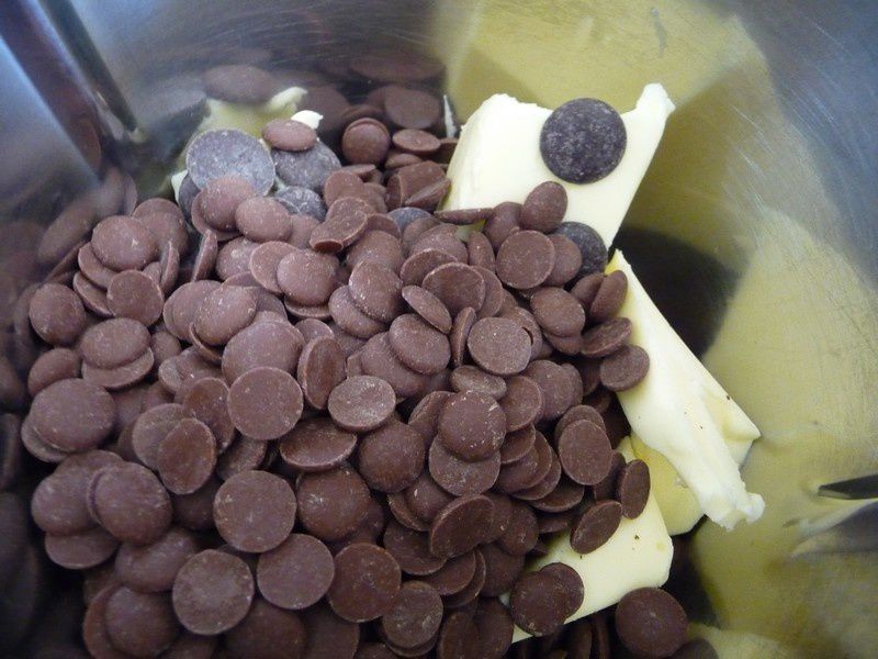 - Faire fondre le beurre dans une petite casserole, casser le chocolat et laisser fondre doucement. Mélanger