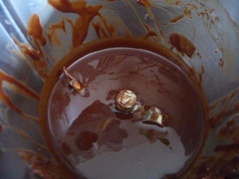 - Mettre le beurre et le chocolat dans votre bol puis faire chauffer 3min/50°C/Vit1, à la sonnerie racler les bords puis continuer la cuisson 2min/50°C/Vit1.