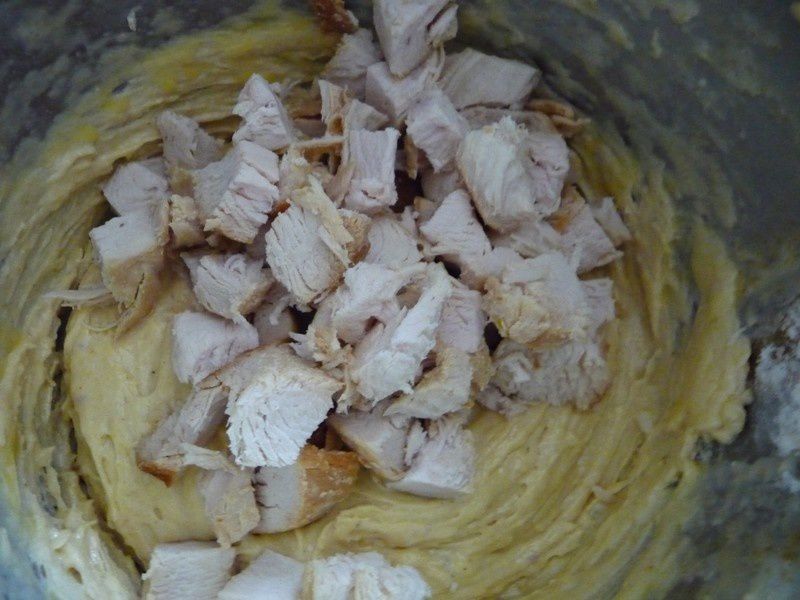- Ajouter les dés de poulet, assaisonner, puis mélanger à nouveau 10sec/vit2/couteau inversé.