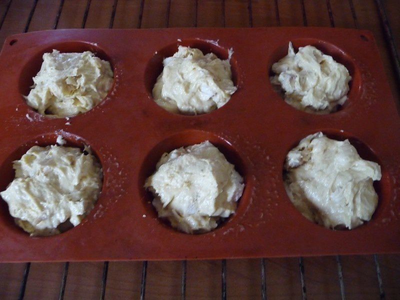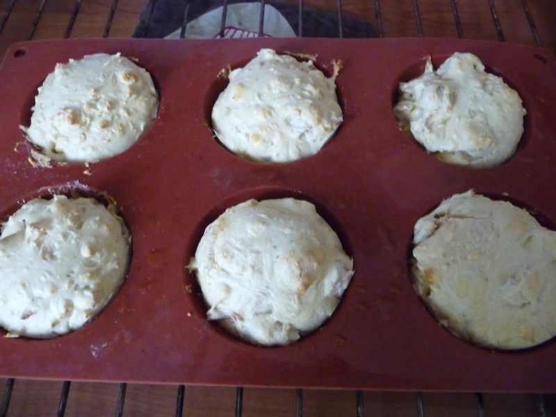 - Répartir dans 6 moules a muffins beurrés, enfoncer quelques dés de comté dans la pâte puis faire cuire 10 minutes à 180°C.