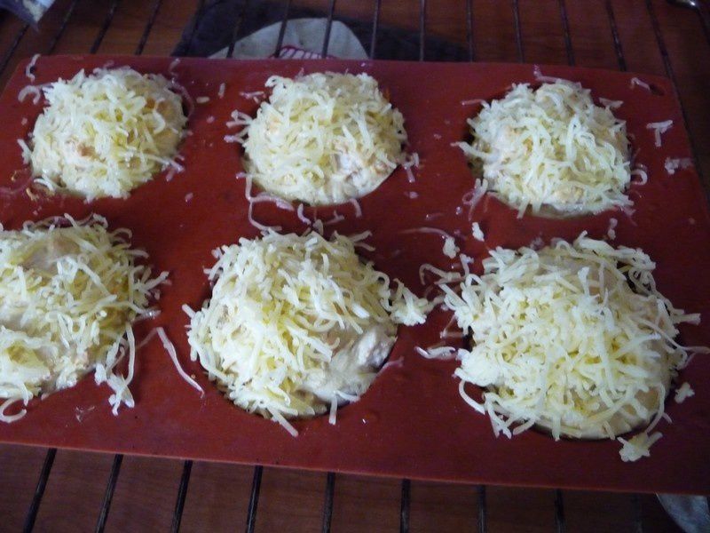 - Au bout des 10 minutes, sortir les muffins puis parsemer de comté râpé, mettre une bonne couche, remettre au four (toujours à 180°c) pour 15 minutes.